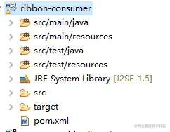 17、pom.xml配置为,此处增加了spring-cloud-starter-ribbon