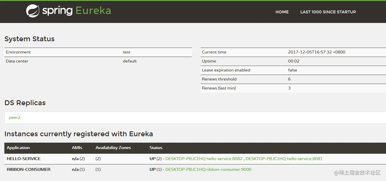 3.由于peer1和peer2互相指向对方,实际上我们构建了一个双节点的服务注册中心集群