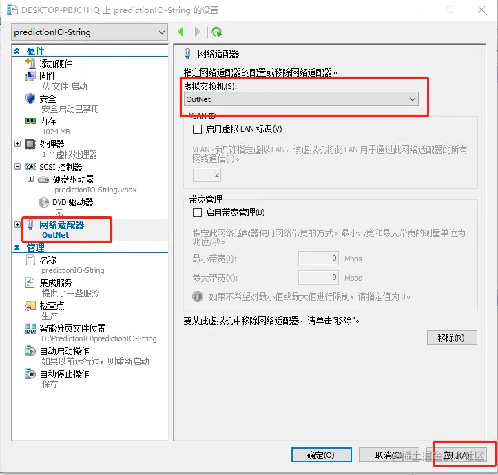 3、打开新建虚拟机的设置——>配置虚拟网络交换机