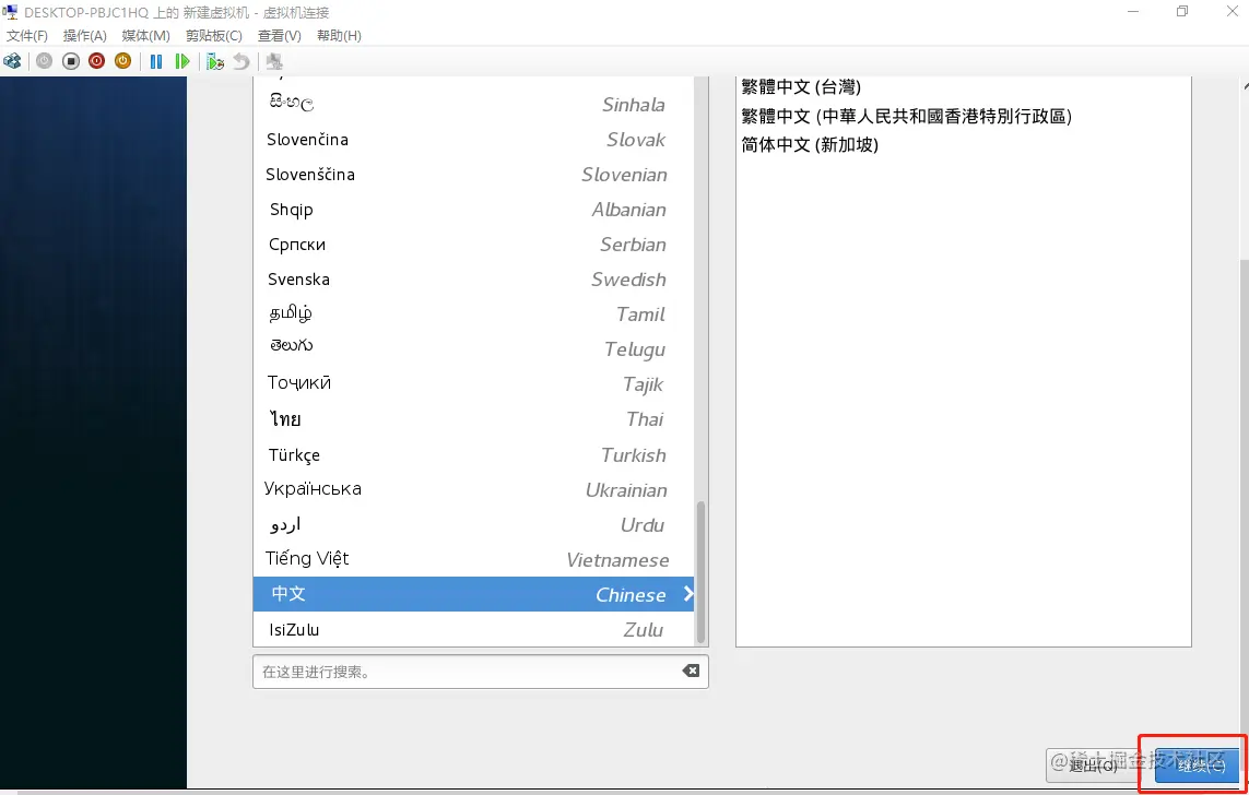 1、如果你已经看到上面的界面了,说明你已经完成了三分之一了。继续:点击enter键,你会进入安装界面——>选好语言(中文),并点击继续