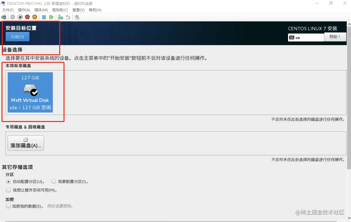 2、选择一个安装位置——>选择本地标准磁盘,点击完成——>开始安装吧