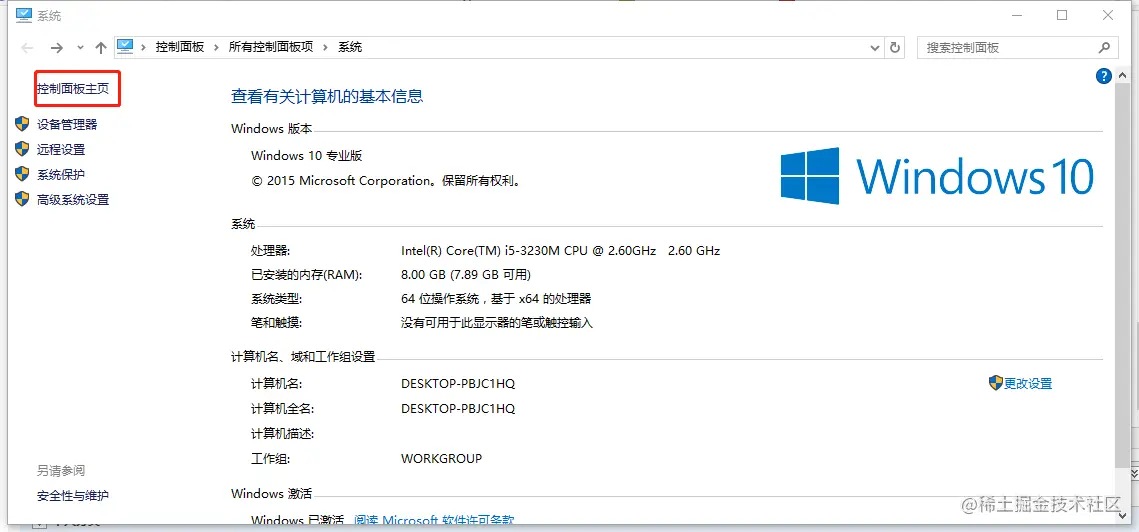 1、点击windows键+e键打开文件资源管理器,右击此电脑——>选择属性——>打开控制面板