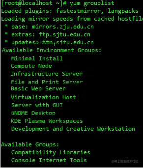 安装完成后再次输入:yum grouplist 界面可能就是这样子的了: