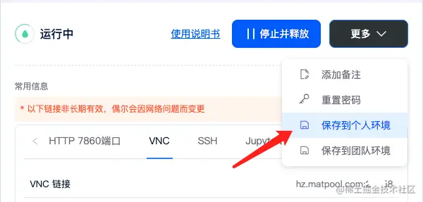 方便下次使用,还可以在租用页面保存环境。