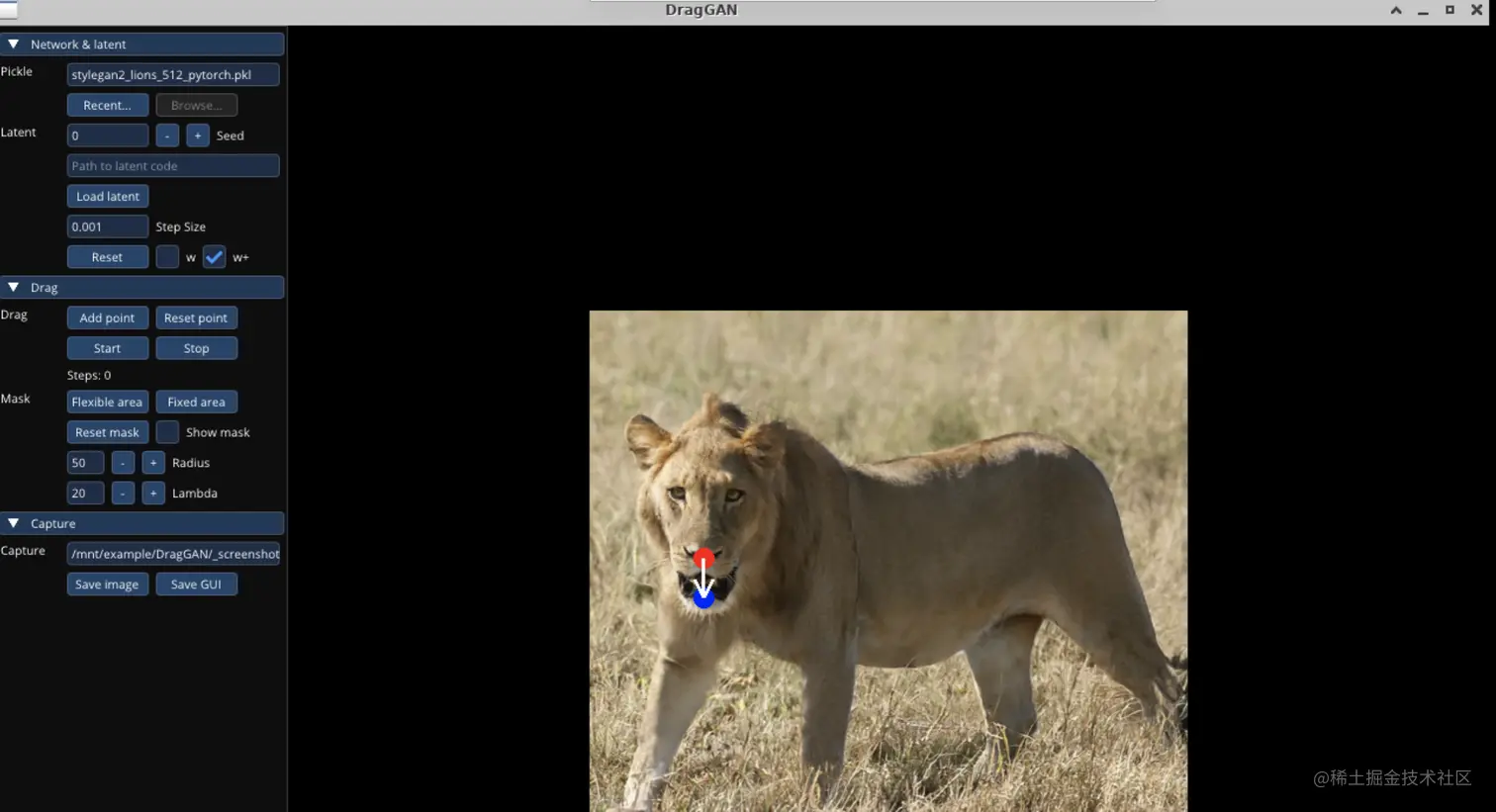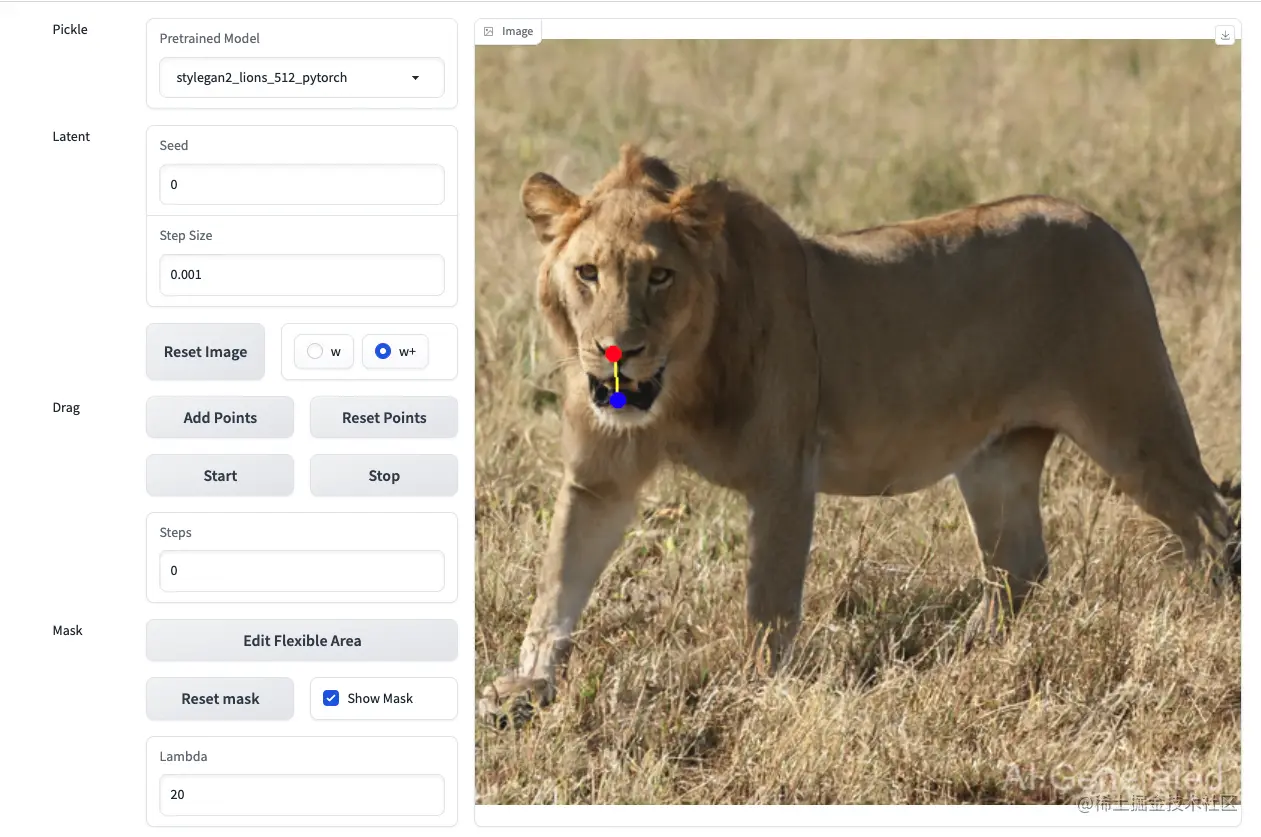 - DragGAN Web应用使用的是 Gradio 开发,默认端口是 7860