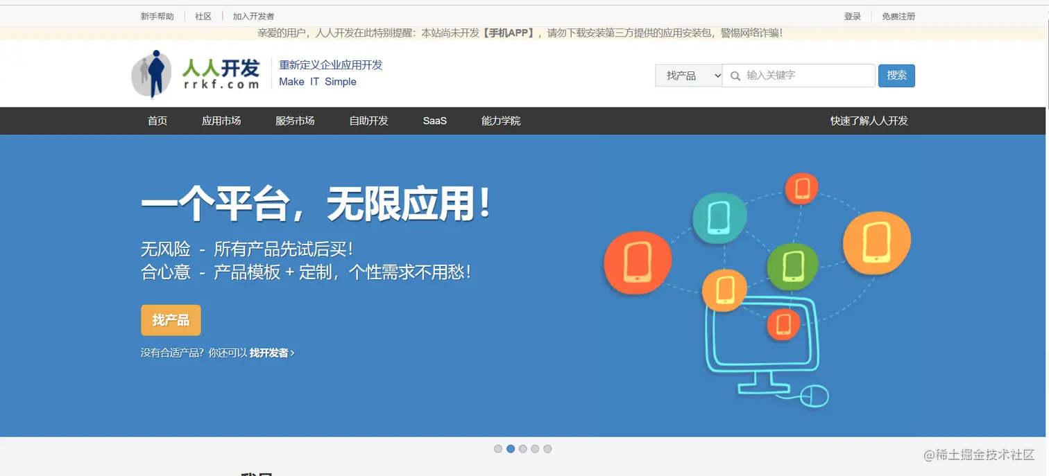 对需求商非常友好的企业应用开发平台,提供了各种专业的定制化服务给企业使用,所有产品先试后买,可以实现各种特色的个性需求。对于开发者来说,找项目的难度会比较大,人人开发的注册流程比较简单,但是简历需要好好写,才会有更多的单子来找你。