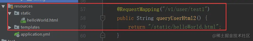 不加@ResponseBody则默认会返回一个视图,如下图所示,返回一个名为 /static/helloWorld.html的视图。