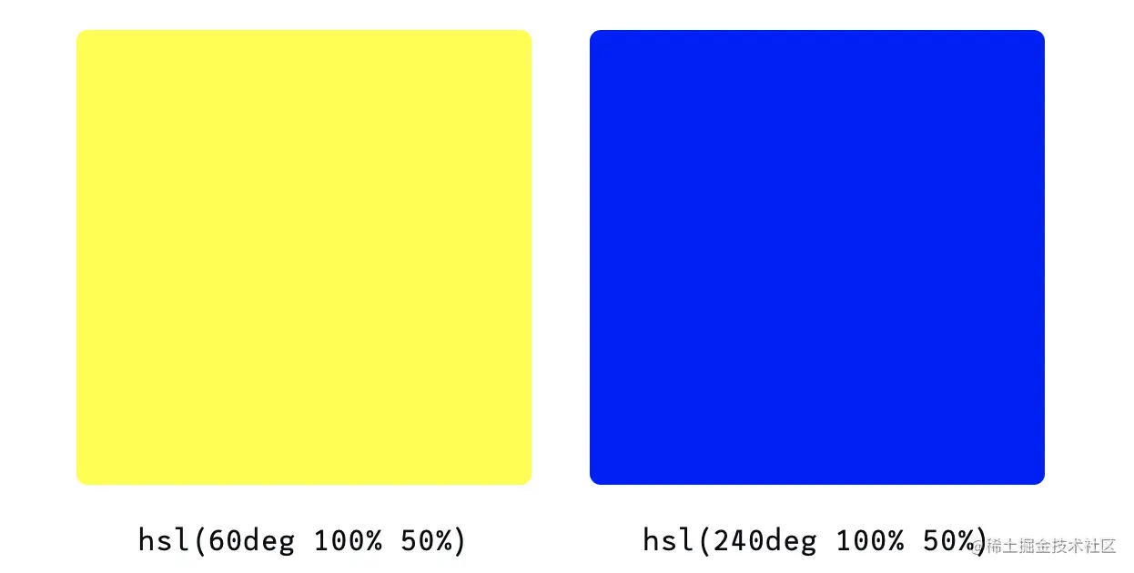 HSL的奇妙之处在于它是直观的。它与我们对颜色的看法密切相关。通过一些练习,当您看到hsl()值时,您将能够立即描绘任何颜色。