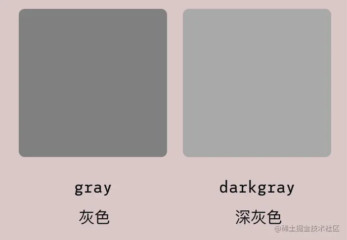 “darkgray”实际上是比“gray”更浅的颜色? 这是因为140种命名的Web颜色来自不同的地方,包括HTML4规范,X11 Unix窗口系统等。这是一个不同调色板的大杂烩,没有一个好的规范约束。