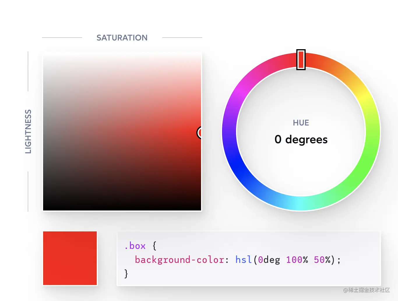 但这并不是思考颜色的唯一方式!让我们来看看一个完全不同的颜色格式:HSL。