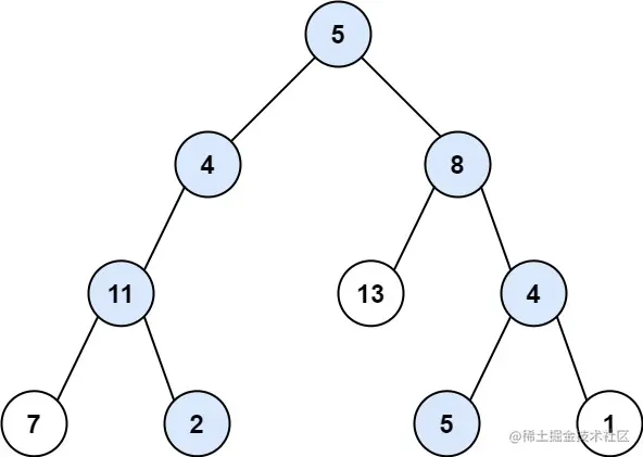输入:root = [5,4,8,11,null,13,4,7,2,null,null,5,1], targetSum = 22