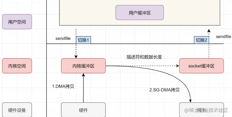 - DMA控制器根据文件描述符信息,直接把数据从内核缓冲区拷贝到网卡