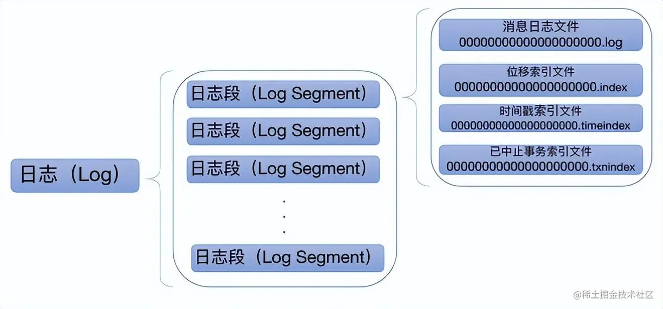 可以从上面看到,一个segment包含一个.log后缀的文件和多个index后缀的文件。那么这些文件具体作用是干啥的呢?并且这些文件除了后缀不同文件名都是相同,为什么这么设计?