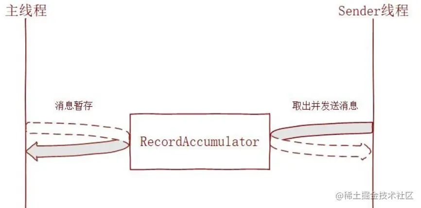 之前已经说了kafka是选择批量发送消息来提升整体的IO性能,具体流程是kafka生产者使用批处理试图在内存中积累数据,主线程将多条消息通过一个ProduceRequest请求批量发送出去,发送的消息暂存在一个队列(RecordAccumulator)中,再由sender线程去获取一批数据或者不超过某个延迟时间内的数据发送给broker进行持久化。