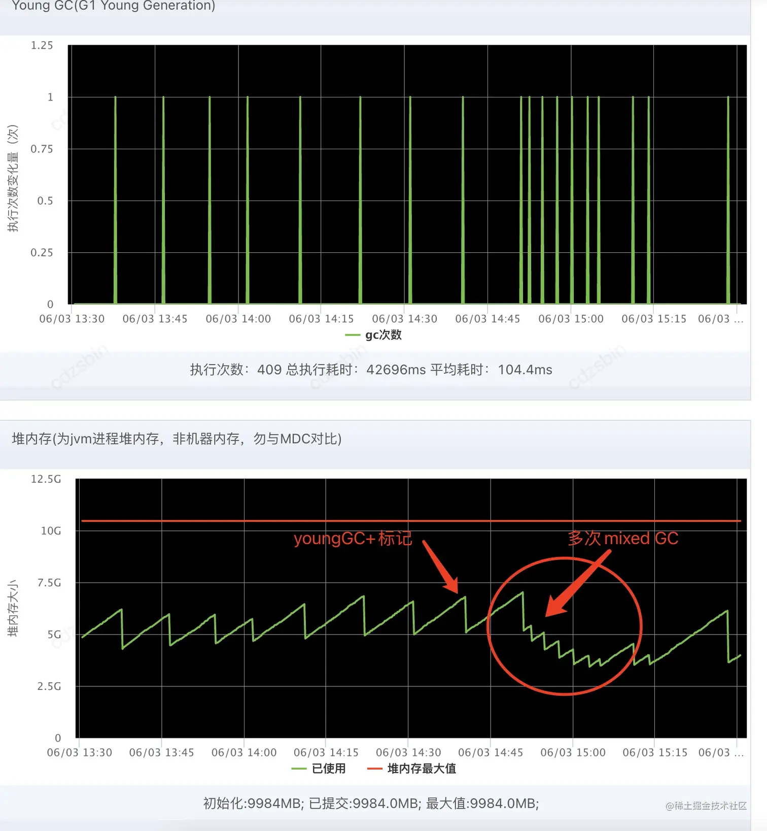 疑问3:监控中为啥出现了多次mixed GC, 而且间隔还如此的短