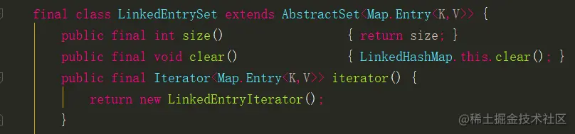 发现 entrySet = new LinkedEntrySet() ,接下来我们查看 LinkedEntrySet 类。