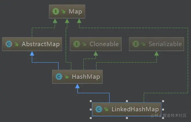 所以我们可以直接这样说:LinkedHashMap = HashMap + LinkedList。LinkedHashMap 就是在 HashMap 的基础上多维护了一个双向链表,用来保证元素迭代顺序。