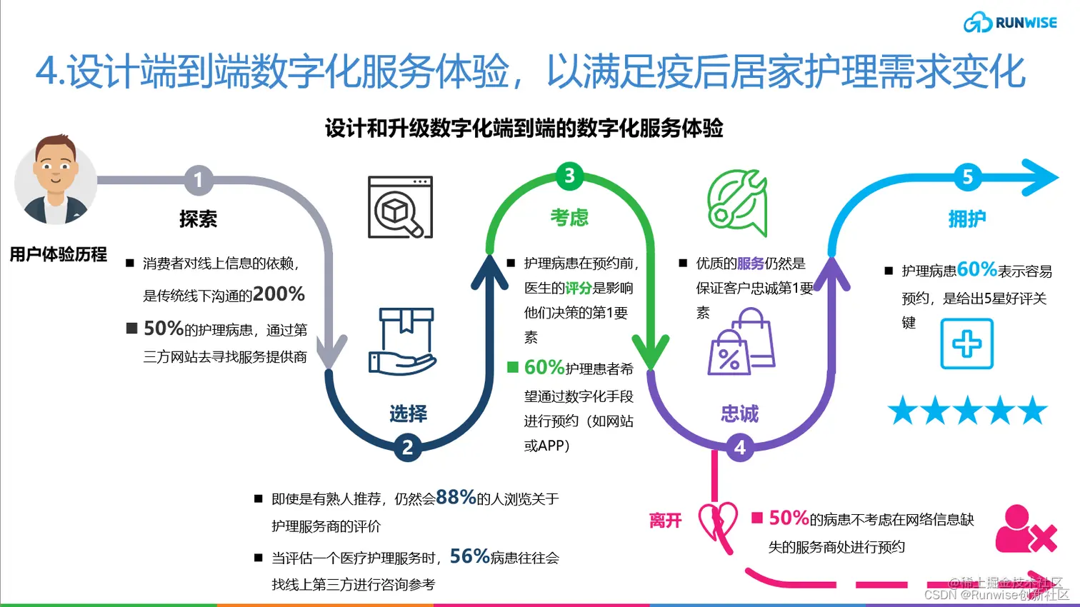 我们要根据居家护理服务用户的需求,通过用户体验历程设计好用户的数字化服务体验: