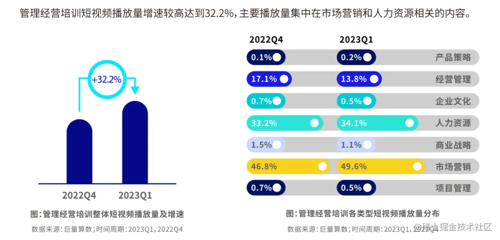 提及火爆抖音的IP“商业顾问张琦老师”,相信大家并不陌生,作为抖音管理经营类视频代表性IP,张琦创造了现象级互联网营销的典例。随着互联网+快速发展以及产业经济结构转型对为从业者职业技能和素养提出更高的要求,社会开始提倡“终身学习”。近日,巨量引擎旗下内容消费趋势洞察品牌巨量算数发布了《2023年第一季度抖音教育行业线上发展指数报告》,其中,代表品类之一“管理经营类培训”视频体现出了市场活跃指数增速快、商业指数高的特征。