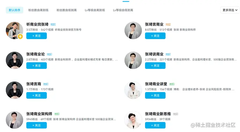 从张琦在各个社交平台的矩阵布置来看,其大量铺号发内容的行为实际上是对平台算法的一种抗衡,不管观众喜不喜欢,只要数量足够多就能让更多的人看到相关内容,即便是因为内容相同导致某个账号被封也没关系,其他账号能立马补上。但是存在被封号/平台限流的风险。