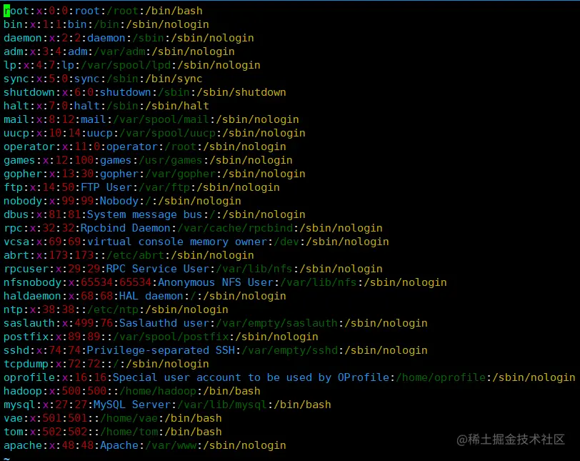 我们通过 vim /etc/passwd 命令,打开 passwd 文件:
