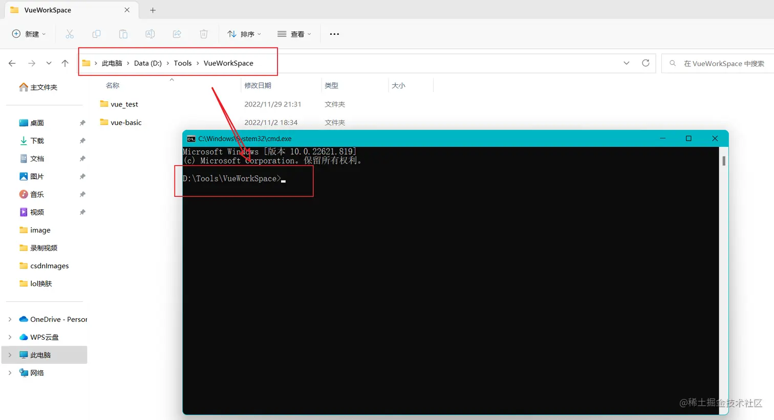 可以选择使用cd命令切换目录,也可以直接在目录输入输入cmd然后回车,我是选择的后者