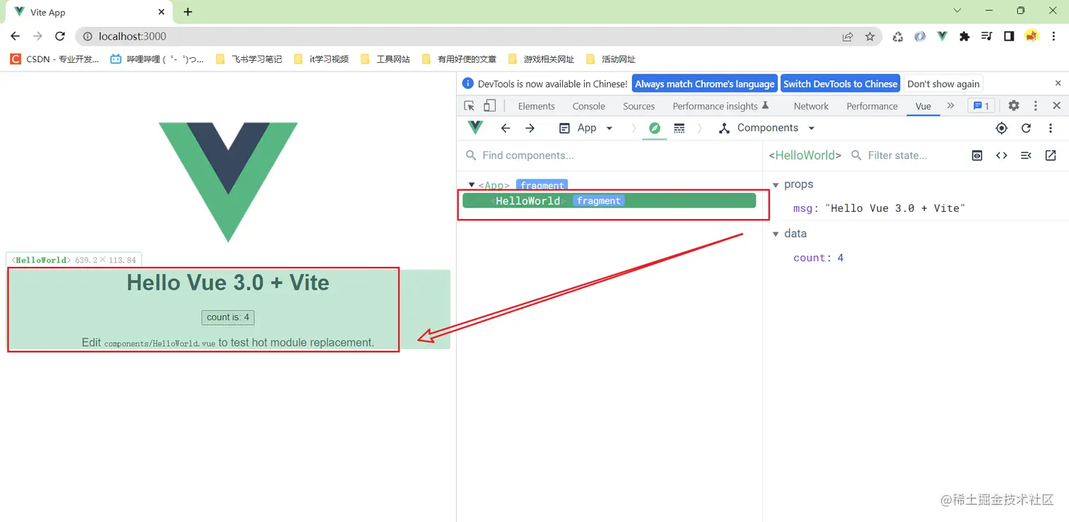 - cli的页面和vue2.0几乎一致,但是vite展示的页面更加清爽,且提供了一个计数器的demo