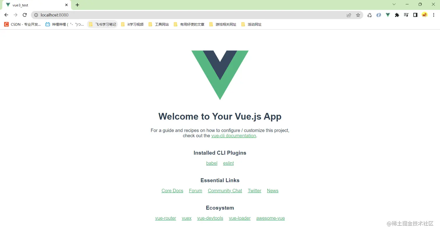 这就是vue3.0提供给我们的界面,和vue2.0长的一模一样的