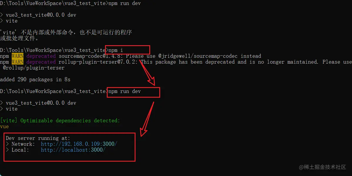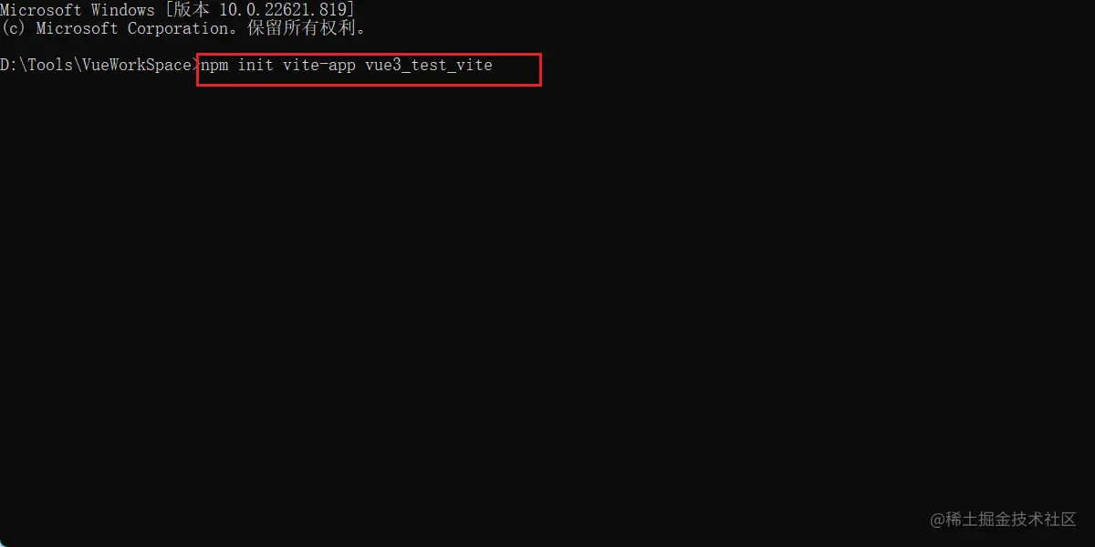 执行命令 npm inie vite xxx