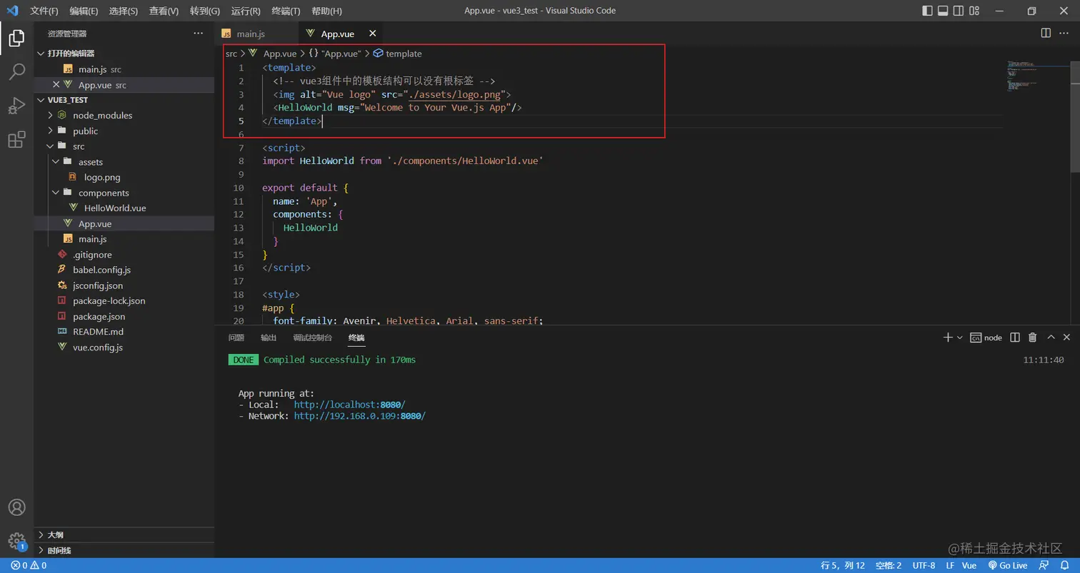 还有一个重要的地方,vue2.0中必须要使用根标签包裹组件模板内容,但是vue3不需要根标签