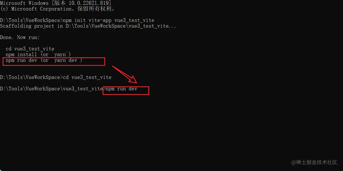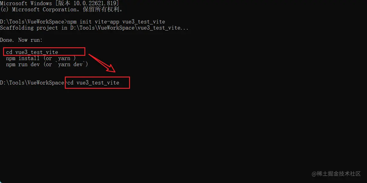 输入命令:npm inie vite xxx并按下回车