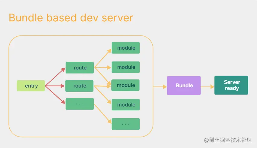 首先是传统构建webpack的工作模式:构建的比较慢,要打包多个文件