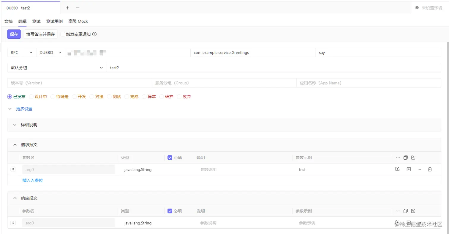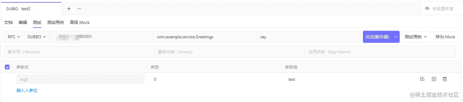 Apikit 自学日记:发起文档测试-RPC CV_coder 2023-06-28 120 阅读1分钟 以DUBBO接口为例,进入某个DUBBO协议的API文档详情页,点击文档上方 测试 标签,即可进入 API 测试页,系统会根据API文档的定义的请求报文自动生成测试界面并且填充测试数据。 对RPC/DUBBO接口发起测试 1. 填写请求报文参数值 此测试Demo接口作用是将传入参数名和参数值输出 2. 发送请求查看返回结果 填写请求参数值,点击 发送 即可发送请求并查看返回结果。