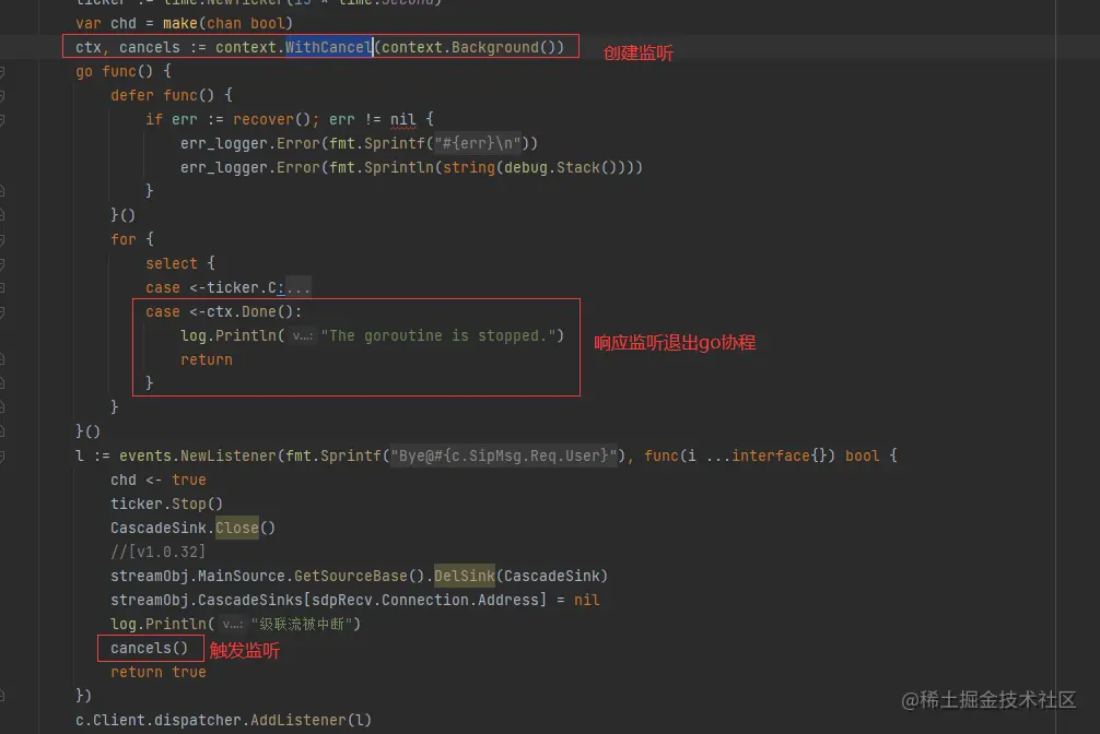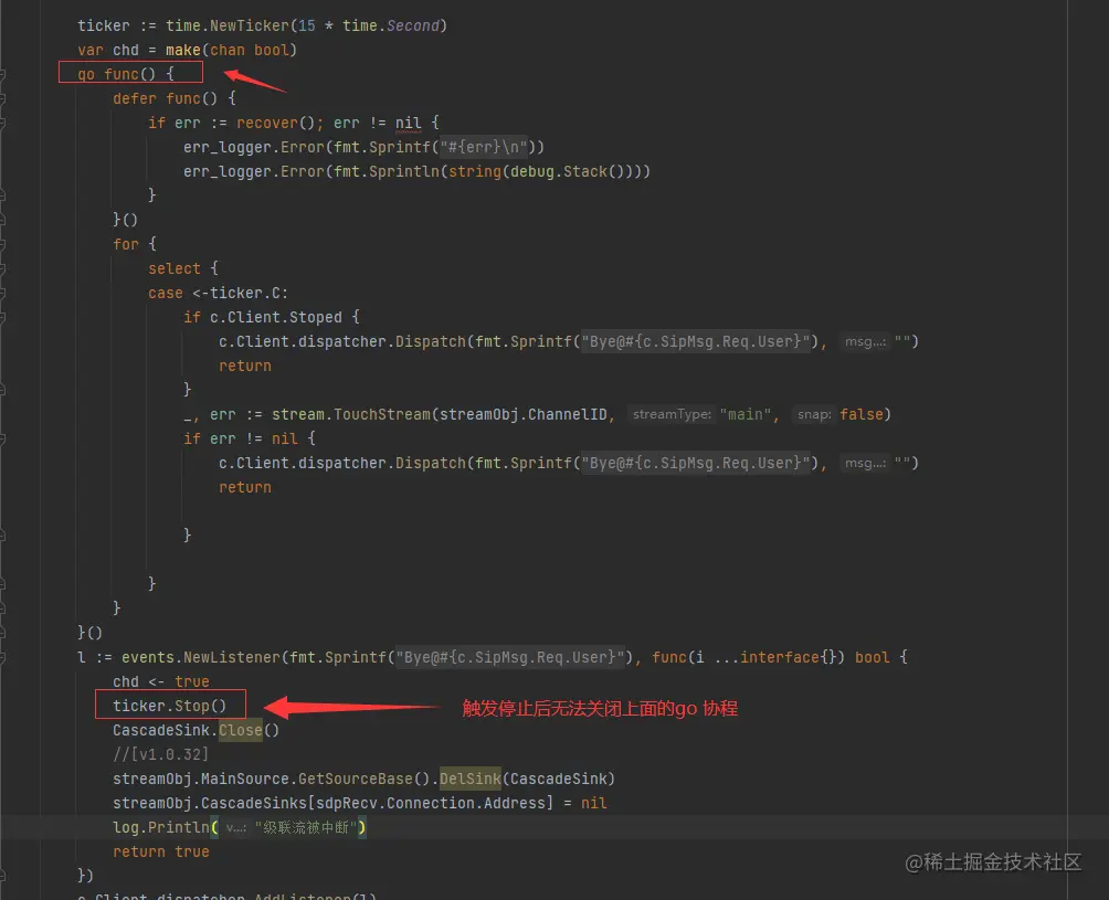 在本地测试发现,只有在上级平台播放时,会出现创建协程后无法释放的情况。断点调试发现,创建的协程在触发停止时,无法进行关闭。