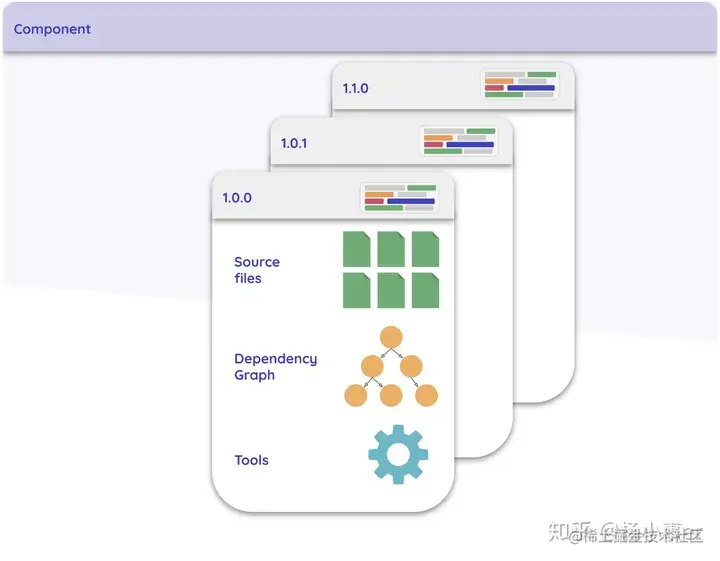 - 组件的内容不仅是源代码本身,还可以包括其他相关文件,例如样式文件,资产(图像,字体),测试代码,文档。