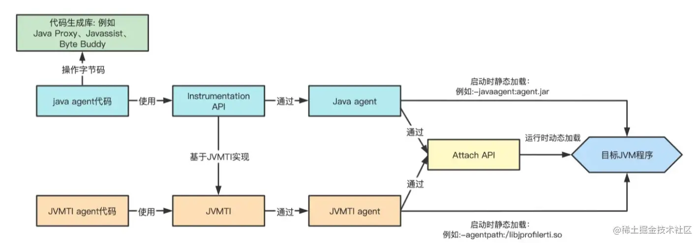 Java agent 分为静态加载和动态加载两种agent加载的方式,如下图: