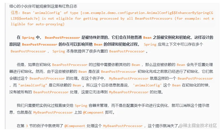 然后,我们定义一个简单的 BeanPostProcessor: