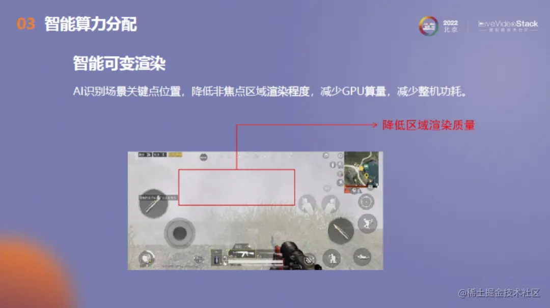 智能可变渲染是通过AI识别场景关键点位置,降低非焦点区域渲染质量,以达到节约GPU功耗的目的。