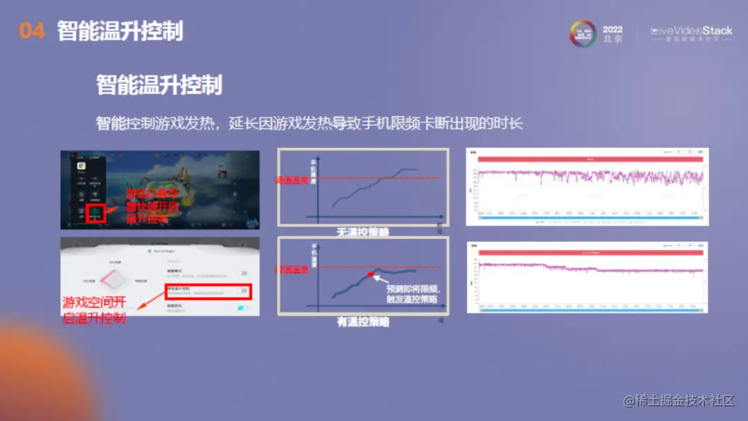 在游戏内可通过悬浮窗快速开启温升控制,在开启温控策略的情况下,可以根据实时使用情况预测到温度变化,控制发热情况,减少限频卡顿现象。