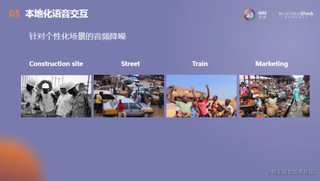 接下来是针对个性化场景的音频降噪。需要根据当地的噪音场景进行数据收集,建立数据库,以应对当地个性化需求。
