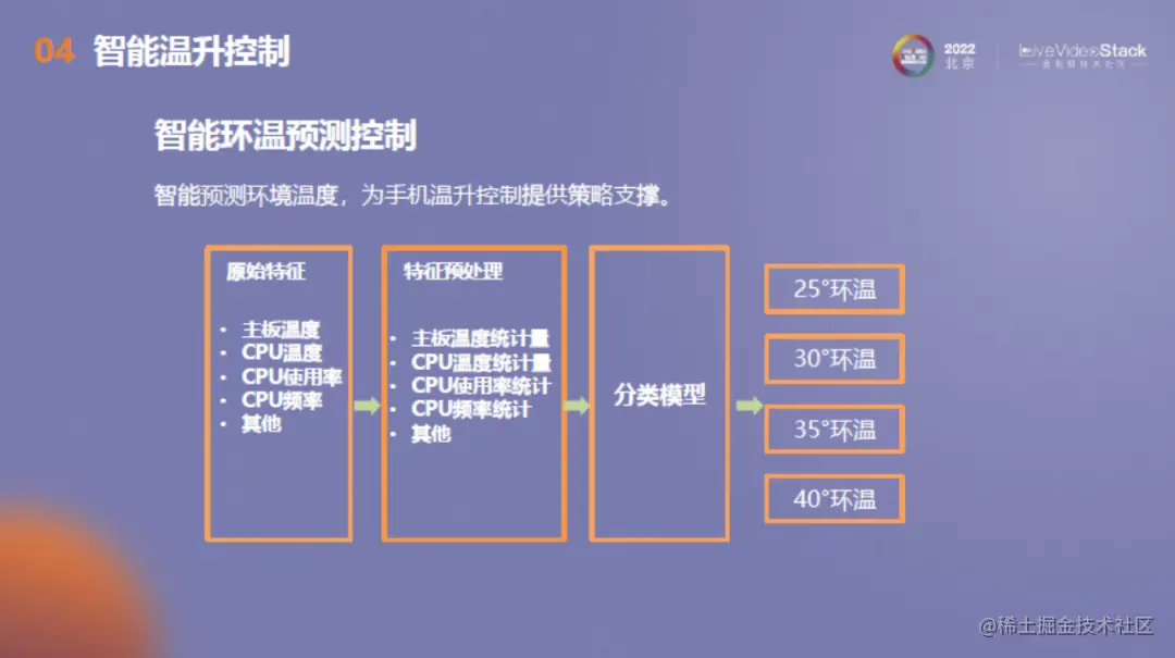 智能环温预测是通过获取到的原始特征如主板温度、CPU温度、使用率等,进行数据预处理,结合分类模型进行环境温度的预测,为手机温升提供策略支持。