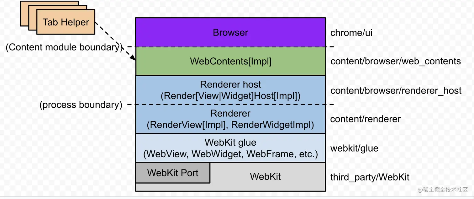 Chromium C++代码库中,在架构层面上content负责红色框中的所有内容。(可以看上面的架构图)