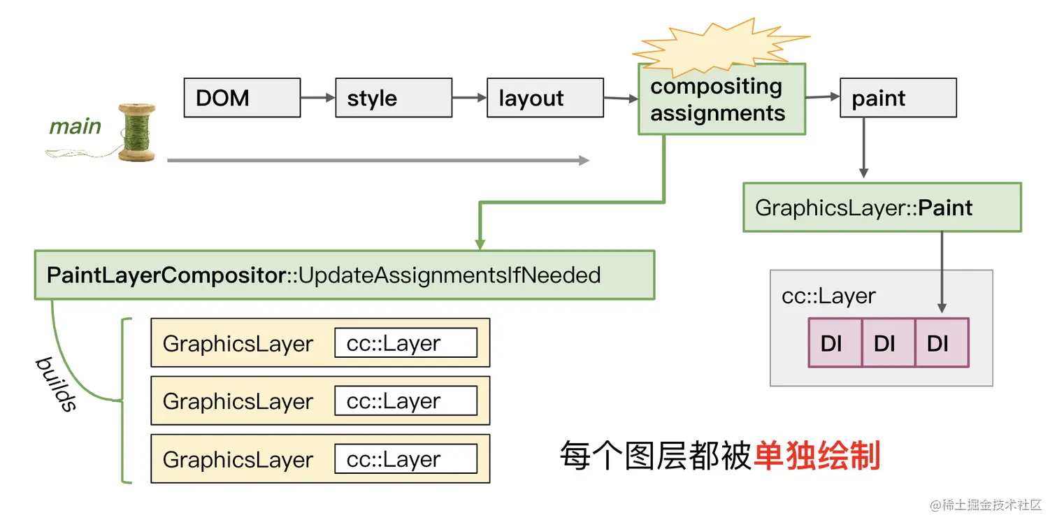 目前,在{绘制|Paint}之前进行图层树的构建,并且每个图层单独进行绘制。