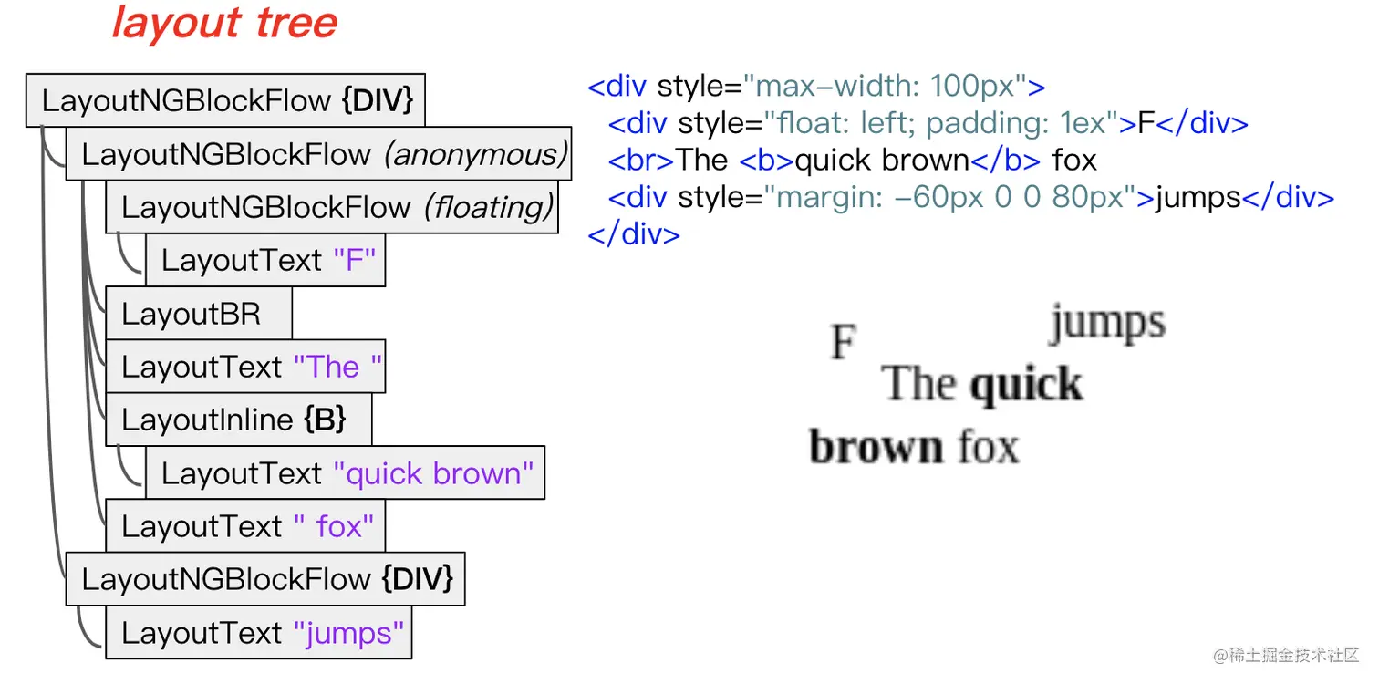 下图是chrome将content生成页面信息的示意图。