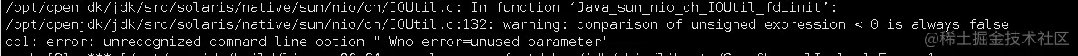 按照结果 修改文件./jdk/make/lib/NioLibraries.gmk:154 去掉编译选项 -Wno-unused-parameter