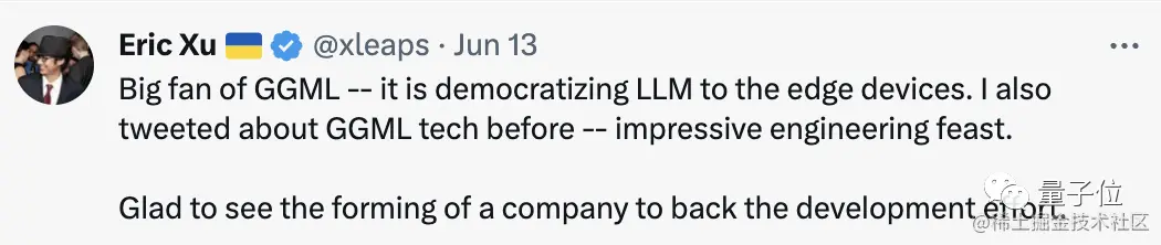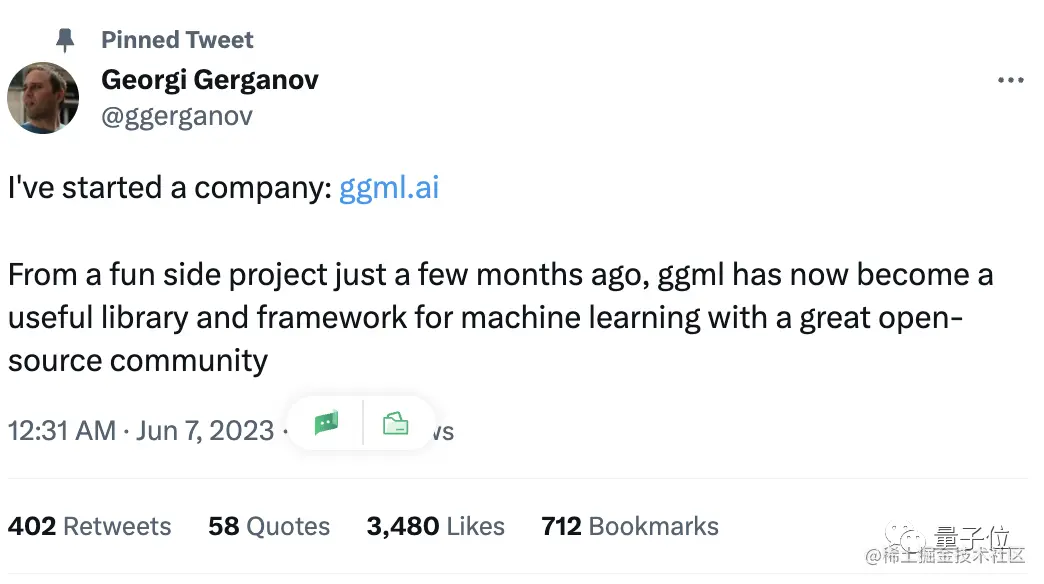 可能由于反响太好,这位大哥决定把背后核心纯C语言框架ggml拿出来创业:原本是几月前的副业项目。