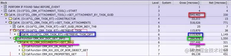主要的瓶颈就在取attachment header的cl_crm_documents=>get_info, 这个方法只支持取单个task的attachment, 0.26秒。 需要找能批量取的API。