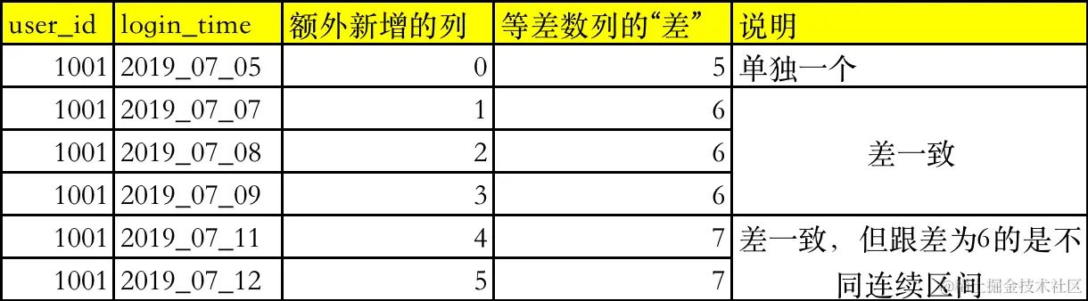但是,下一个问题就是,不同的连续登陆区间要怎么区分?