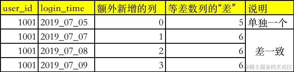 找到这个分组的group_id问题就解决了,肯定不能是user_id,也不能是login_time,但是只有这两列,我们可能需要引入第三方列