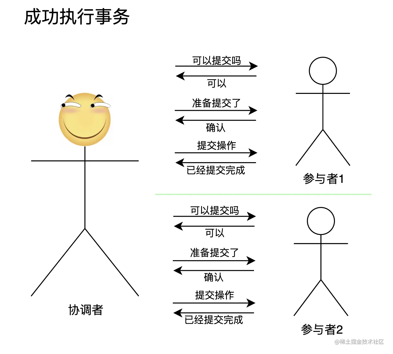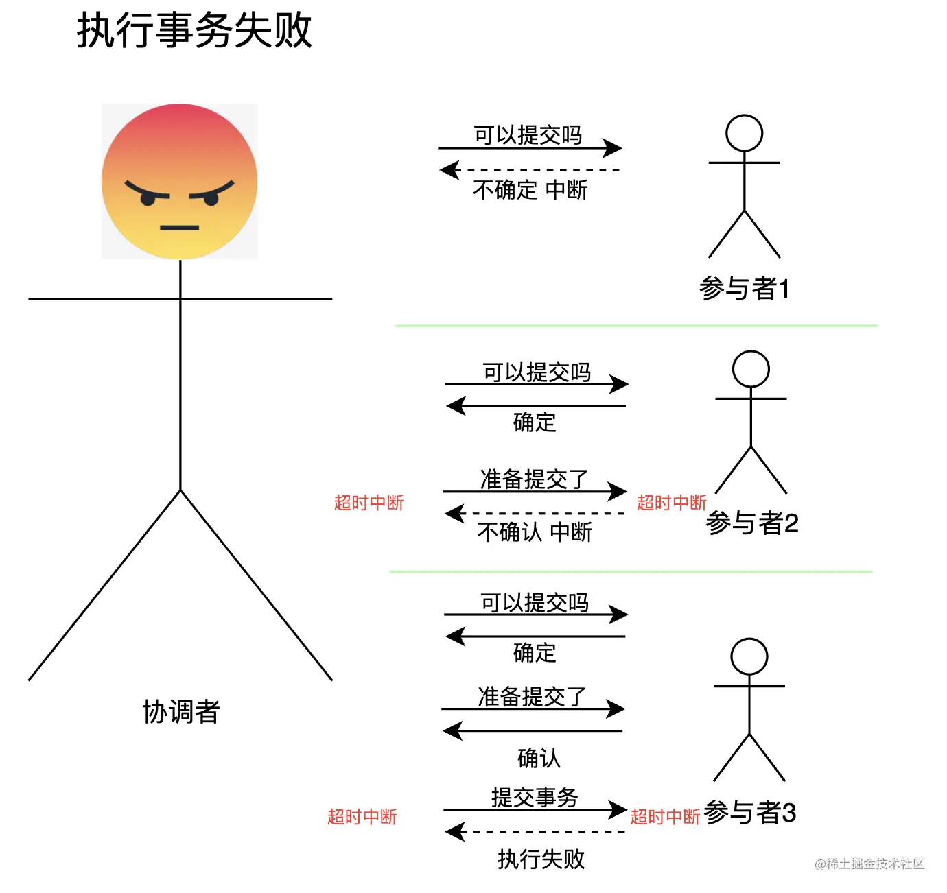阶段一叫做CanCommit,也就是对应图中“可以提交吗”的提问